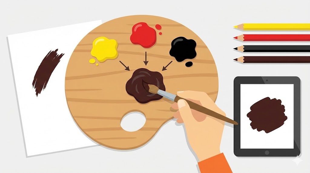 こげ茶色の基本混色レシピ|黄+赤+黒で作る安定カラー
