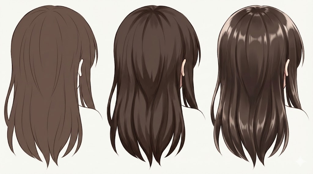 髪のこげ茶をきれいに見せるには、「影・中間・ハイライト」の三つにざっくり分けて考えると整理しやすくなります。