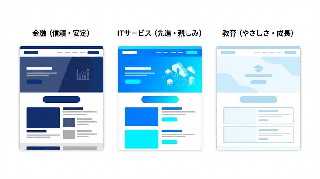 同じ青でも、ブランドの方向性によって「ちょうどいいゾーン」は変わります。