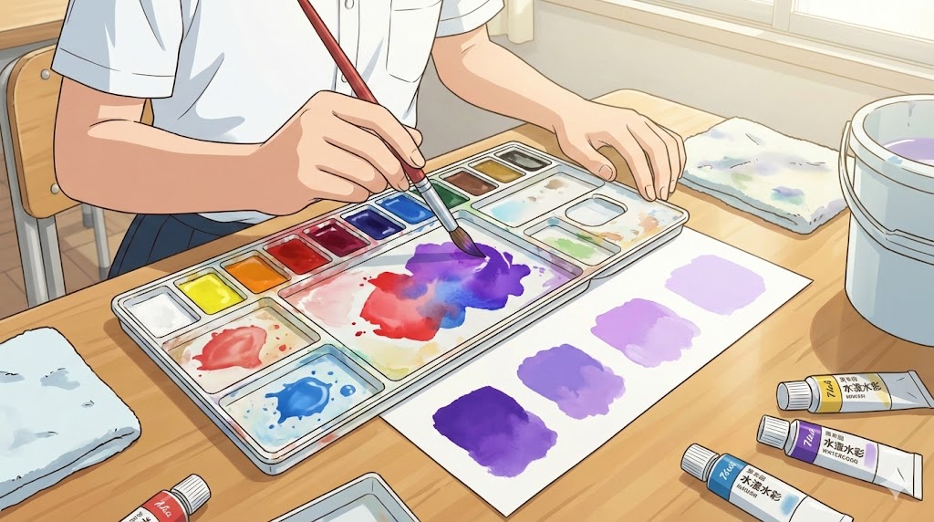 学童用水彩で作る「標準の紫」レシピ