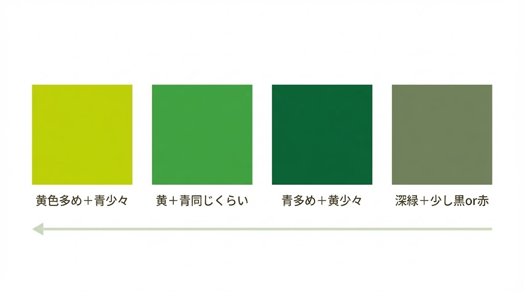 ここでは、黄緑〜標準的な緑〜深緑までを、配合の目安ごとに整理していきます。