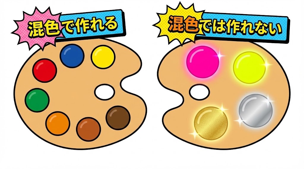 蛍光色・金銀・メタリックなどは混色では作れない