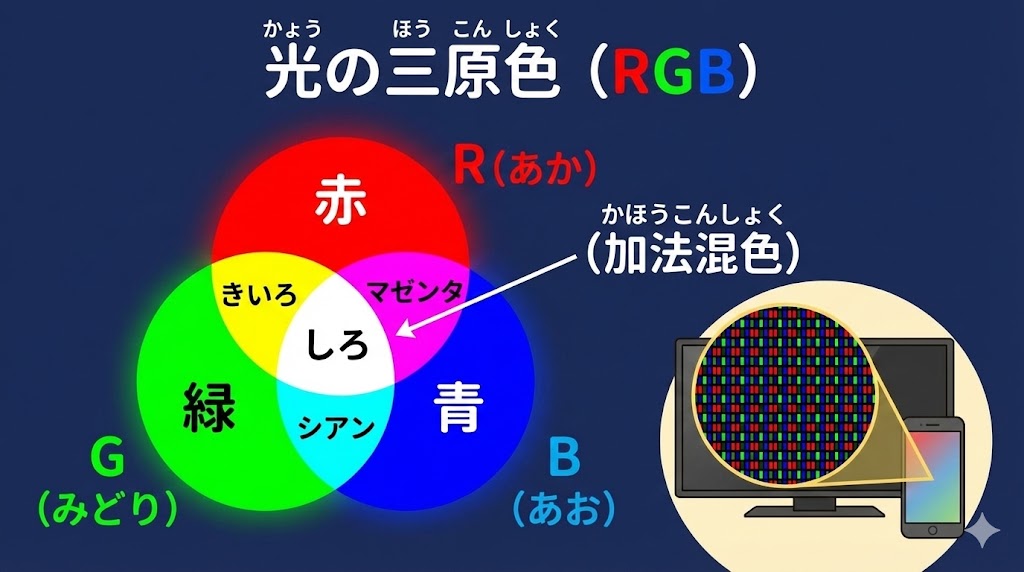 光の三原色RGBと加法混色のしくみをやさしく図解