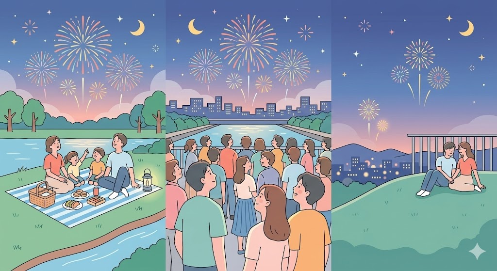 • 観覧場所は「近くで迫力を取るか」「少し離れて帰りやすさを取るか」で決めると選びやすくなります