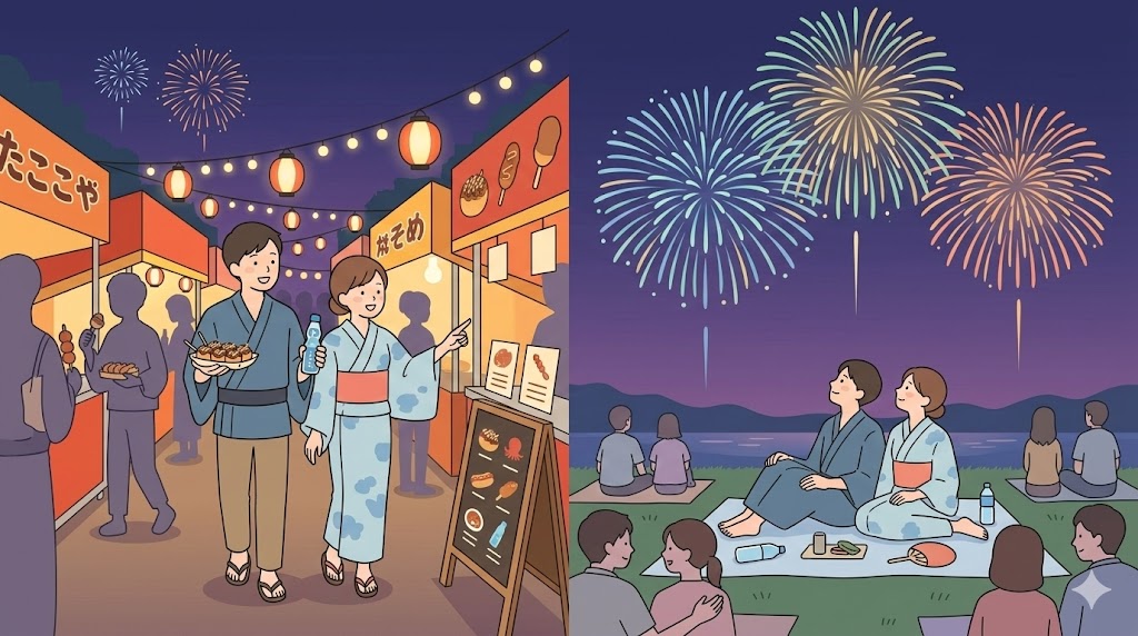 - 屋台も花火も一緒に楽しみたい
