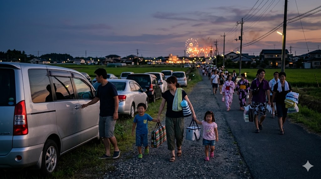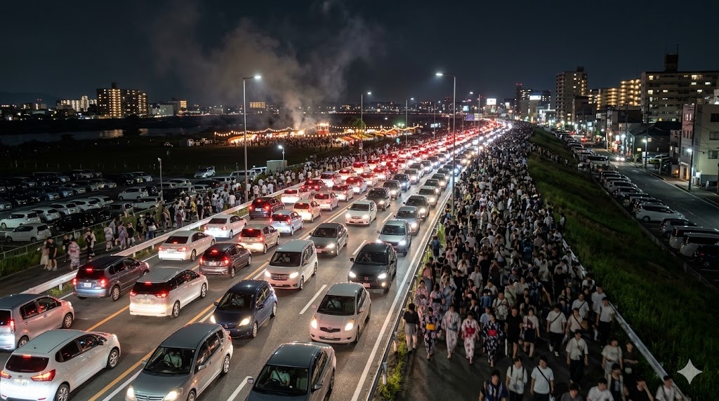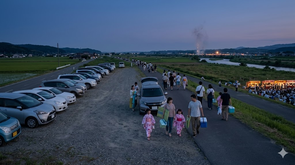 車利用の成否は、到着時よりも帰りで決まりやすいです。花火の終了後は人も車も一気に動くため、ここを軽く見ているとかなり疲れやすくなります。