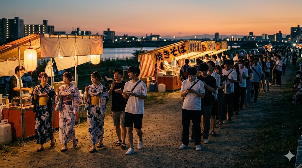 - 屋台重視の人は、花火前に食事や買い物を済ませる前提で考える方が動きやすいです