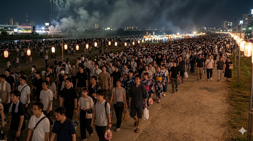 花火が終わったあとに一気に人が動くのは、どの大会でも起こりやすいことです。とくに会場周辺で交通規制がある年は、駐車場を使う人も駅へ向かう人も動きが集中しやすくなります。