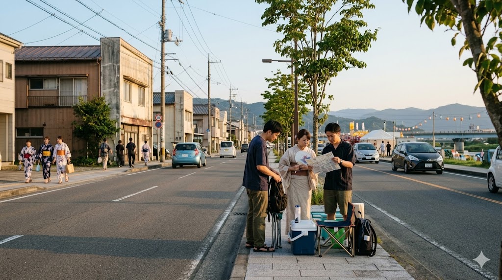 とくに観覧エリアに近い道路は、実際に入れたとしても停車しにくかったり、歩行者優先の流れで思うように進めなかったりします。