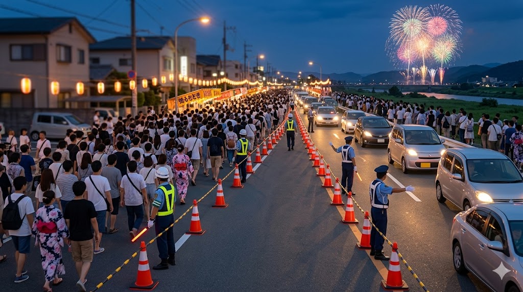 交通規制の詳細が未発表でも、会場周辺で人が集中する大会では、花火開始前に道路の使い方が大きく変わりやすくなります。