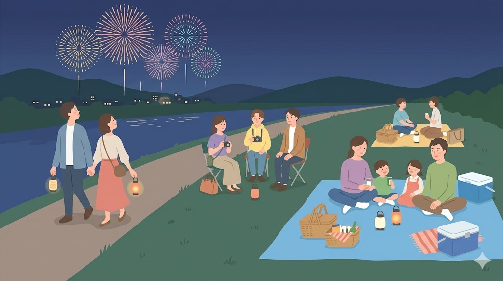 遠方から行く人は、花火を見る時間だけでなく、到着前後の動線も重要です。有料席が向くのは、当日の観覧を安定させたい人だけではありません。終了後の移動を少しでもラクにしたい人とも相性があります。
