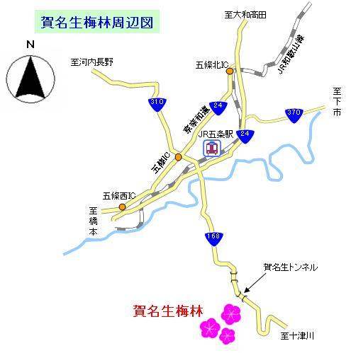 ※賀名生梅林への行き方は下記の地図の「拡大地図を表示」の文字をクリック