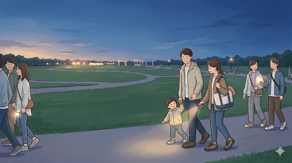 子連れでは、見え方よりも「待てるか」「歩けるか」「暗くなってから戻れるか」のほうが大きな問題になります。芝生や広場の雰囲気がよくても、帰りに疲れてしまうなら相性がよいとは言えません。