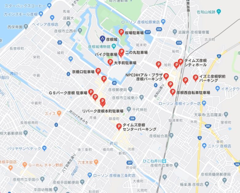 彦根城周辺の駐車場