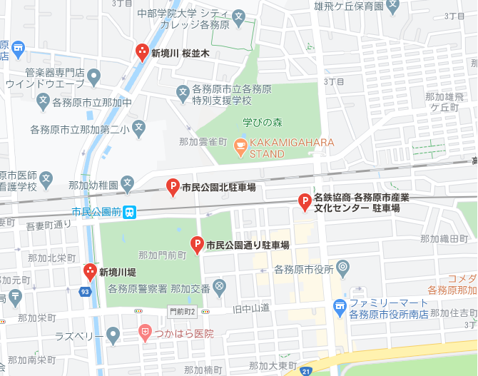 市民公園:名鉄「各務原市民公園前駅」下車徒歩1分