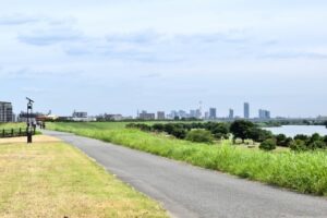 打ち上げ会場近くにある氷川神社近くの土手は、周りに遮るものがなく迫力ある花火を楽しむことができる穴場スポットです。