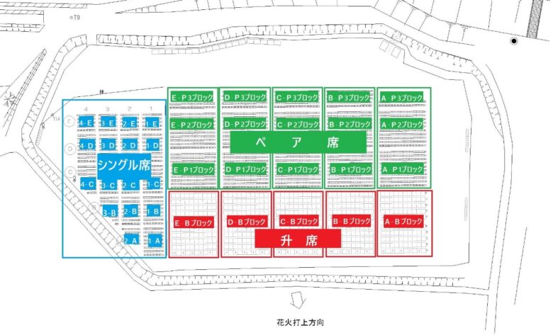 早くに会場に着くことができない、できるだけ混雑を避けて花火を見たいという方は、有料観覧席を利用するのがよいかも知れません。