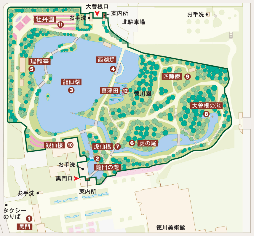 - 歩きやすい靴を選びましょう。園内には石畳や砂利道もあります。