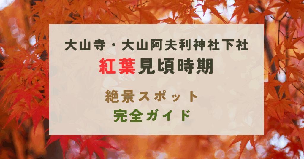 神奈川県の秋の風物詩として知られる大山寺と大山阿夫利神社下社の紅葉。 2025年の見頃時期やライトアップ情報、アクセス方法から混雑対策まで、紅葉狩りを楽しむための全てをご紹介します。 歴史ある寺社と自然が織りなす絶景を堪能し、特別な秋の思い出... -